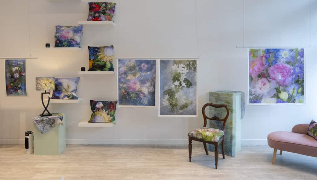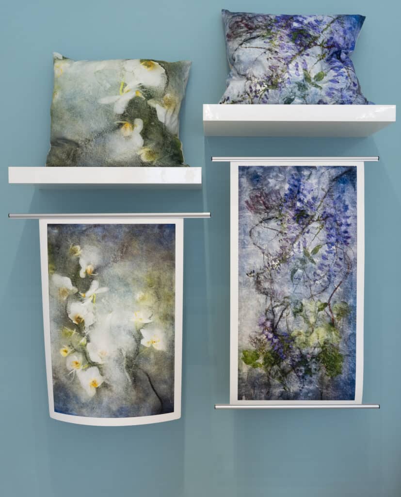 Floraveira was born of a desire to hold on to fleeting beauty. As a gardener I lived for the moment of bloom, hard work would burst into color and form and then I would watch as the blossoms and plant matured, slowly morphing into another form. As a lover of paintings (a gallery stalker from my teens until today) I consume the shape, line, color and expression in all the ages of fine art. As a photographer in my Floraveira series, I want to bring all those impulses to bear; all the form, emotion, and expression that I cherish, make it visible, and hold on to it forever! Choosing, painstakingly arranging, freezing (through much trial and error) and photographing the flowers through the entire process allows me to create the final portrait. It is most gratifying to see my ideas and desire take form, and more gratifying still when the ice gives me a surprise that underscores my original intent. It is as if there is an understanding, an exchange that happens when my thought is fully formed and the ice takes over. Then I dance on a sort of edge of revelation. I want to reveal, and hold, what is with a nod to what will become. Fully inhabiting the present moment while living with the awareness of inevitable change encapsulates that revelation and is a mirror to my own evolution as an artist and as a human.