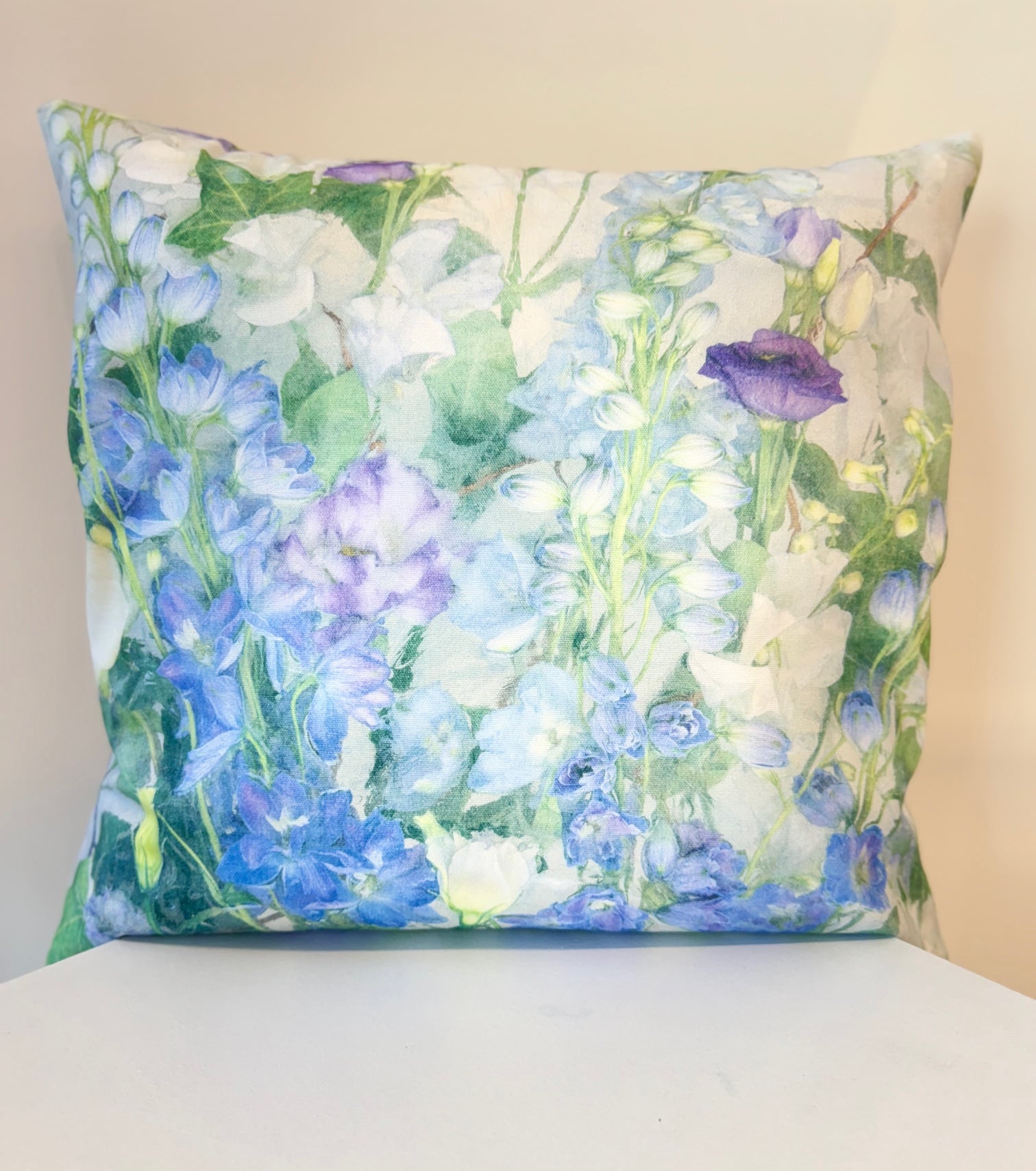 22″ square, 100% Cotton, washable cold water, matching color zipper closure, cover ONLY, stuff with foam or feather insert. Ships flat.